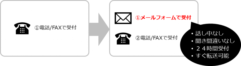 電話やFAXでのお問い合わせ受付、紙媒体の印刷や封入・郵送などの日常業務について、ホームページを活用することにより事務の軽減とペーパーレス化に向けた変化が狙いでした。