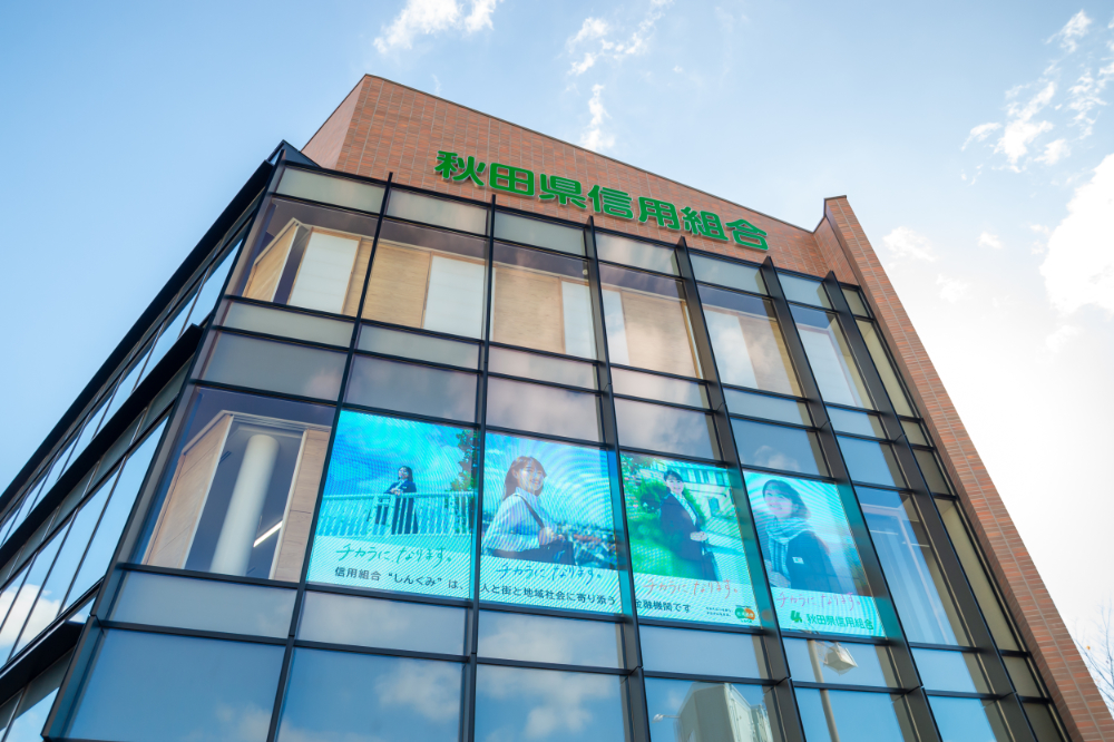 秋田県信用組合様の本店本部移転新築に伴い、デジタルサイネージと2階・3階フロアの什器のご提案をさせていただきました。