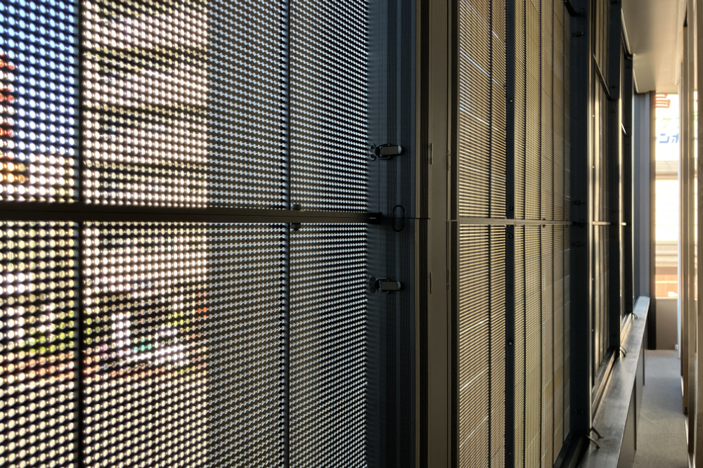 室内に設置していても外部の自然光を遮らないシースルーLEDを採用することで、屋外からの適度な遮断性を保ちつつ十分な採光を確保することができます。
