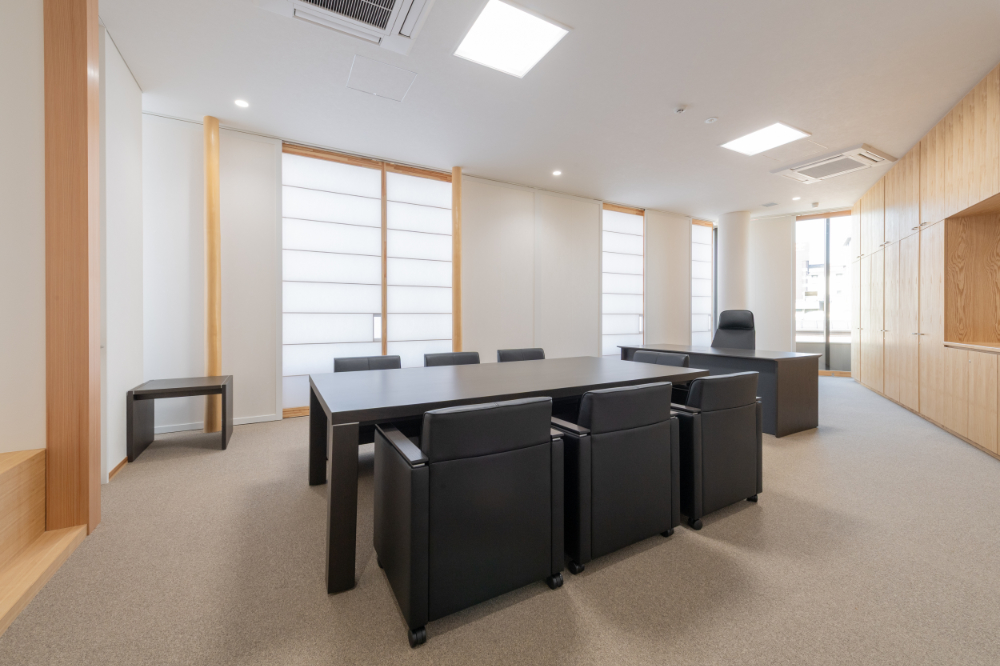 理事会議室には高いデザイン性と天板を折りたたむことができる機能性を兼ね備えたテーブルをご提案いたしました。