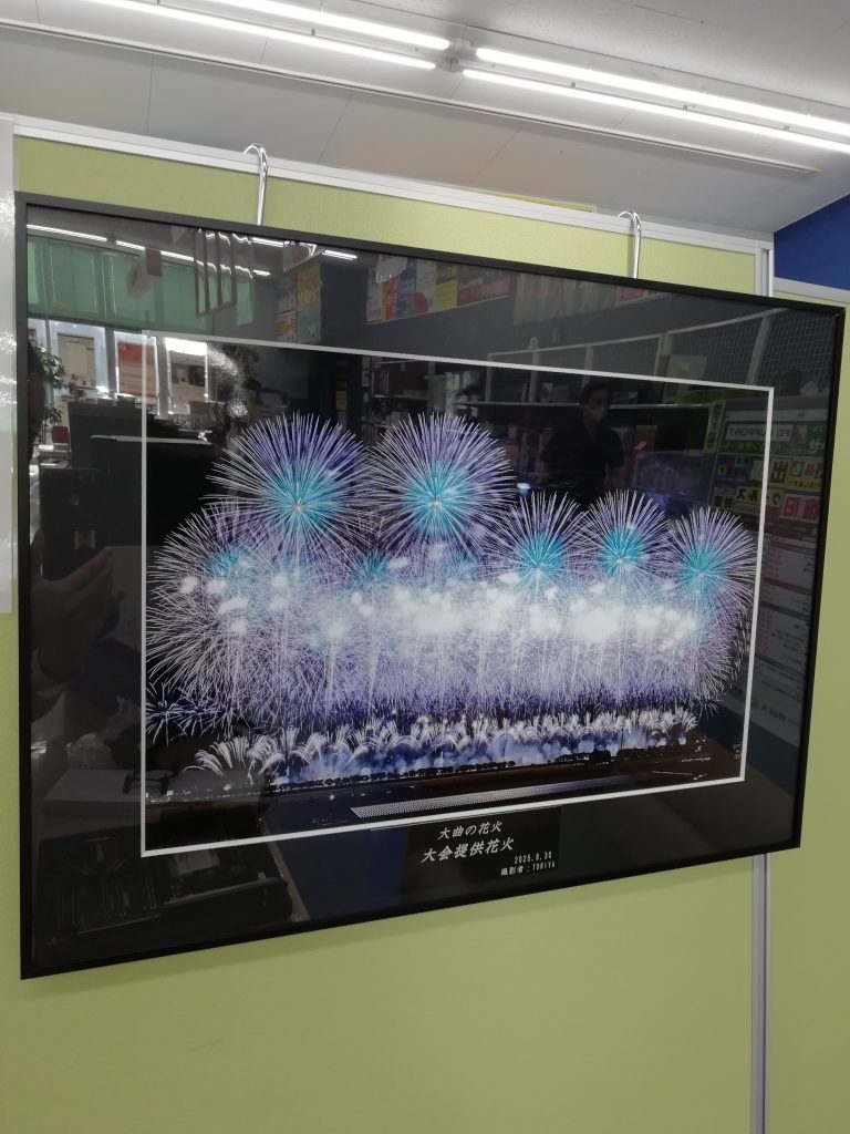 COM☆TOPICS 展示写真 スタッフ情報 2025.09.22 当店サポートカウンターには、お客様より寄贈されたすてきな写真を掲示しております。今回、先月開催されたばかりの「2025大曲の花火 大会提供花火」の写真をご提供いただきましたので写真の差し替えをいたしました。 大迫力の華やかな花火が見事に収められた一枚です。ご来店の際は是非ご覧ください。 皆様のご来店を心よりお待ちしております。