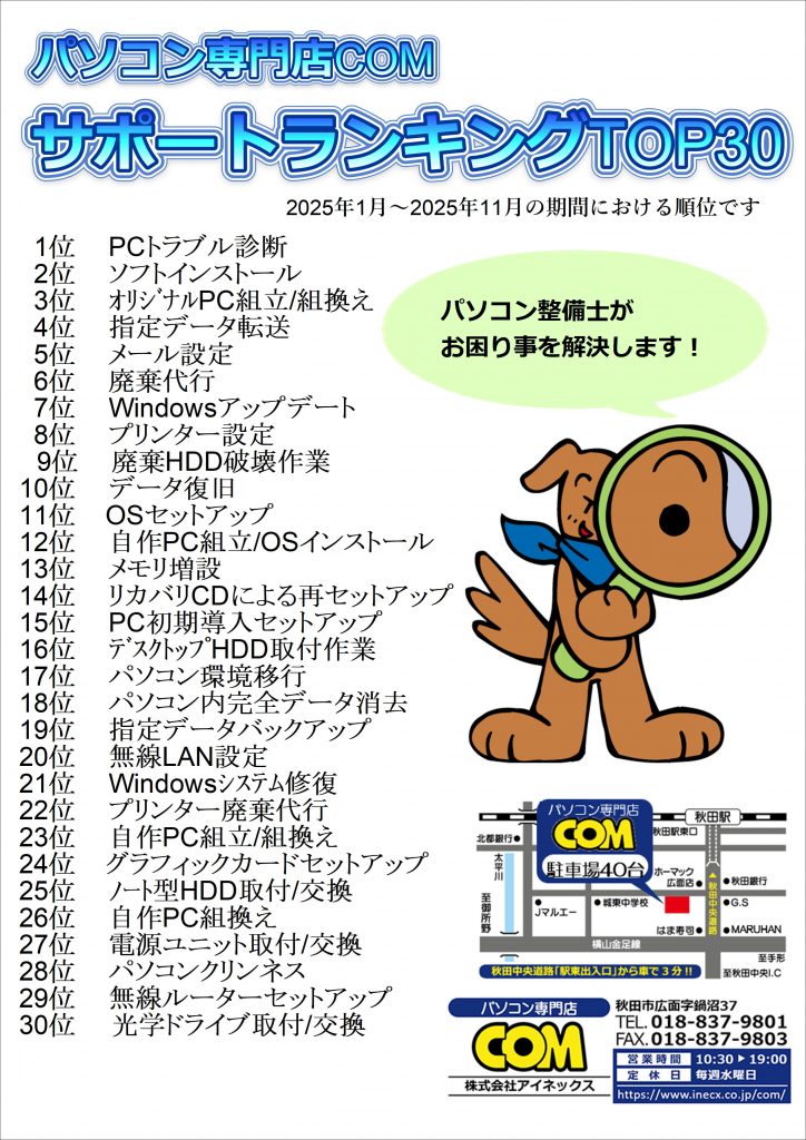今年は10月にWindows10がサポート終了となり、アップグレードなどのサポート作業や新規PC購入による設定作業などたくさんのご用命を頂きました。