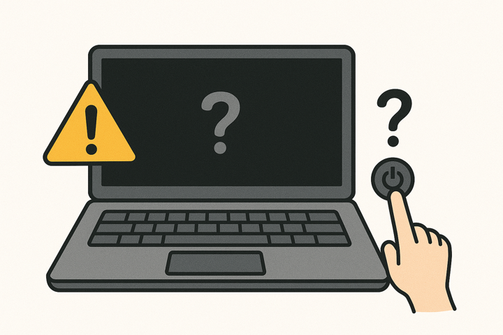 対処: 電源ケーブルをしっかり差し、10分ほど充電してから電源ボタンを長押しする。(ノートPC)