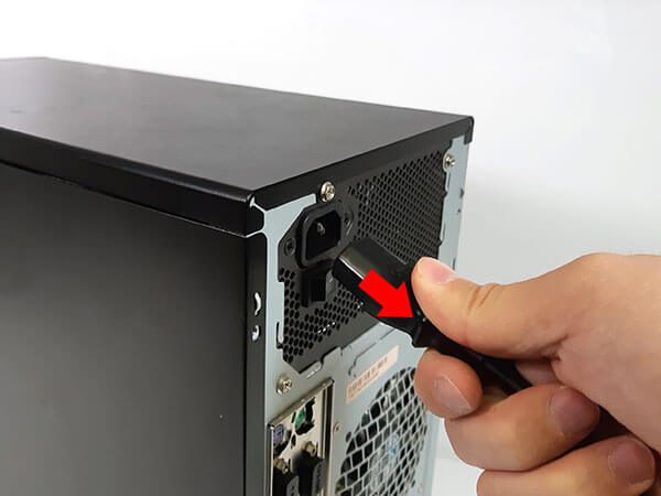 デスクトップパソコンの放電方法、まず電源コネクターを抜く。